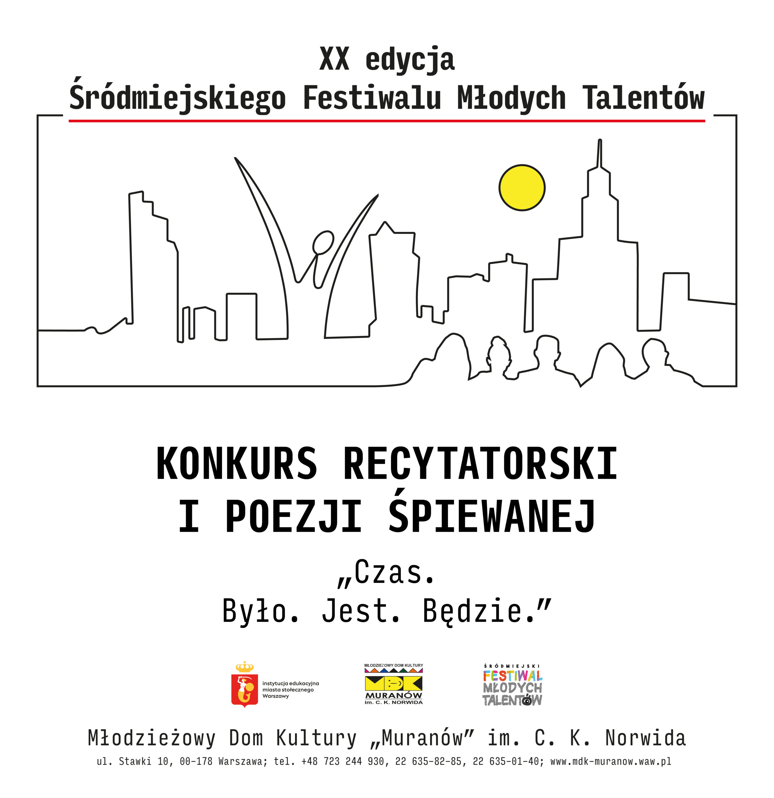 Zapraszamy do udziału w konkursach XX edycji Śródmiejskiego Festiwalu Młodych Talentów. Regulaminy oraz karty zgłoszeń są dostępne na stronie https://mdk-muranow.waw.pl/konkursy/